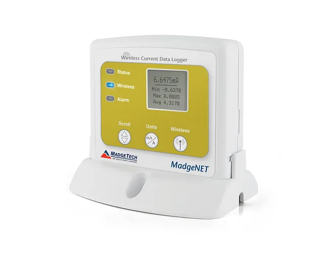 Vybrat variantuRFCurrent2000A je bezdrátový data logger stejnosměrného proudu dostupný ve třech rozsazích: 20 mA, ±160 mA a ±3 A. Lze jej připojit přímo ke zdrojům nízkoúrovňového proudu nebo k senzorům s proudovým výstupem, jako jsou průtokoměry, převodníky a další.